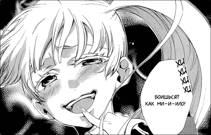Асмодея вместе с ее сестрами отправляются убить Тоширо Годду и Чиё Кумасаву . Когда они нападают на Кумасаву, сестры с ужасом видят, что ни одна из их атак не работает, прежде чем отклоняют их Вирджилия и Беатрис .