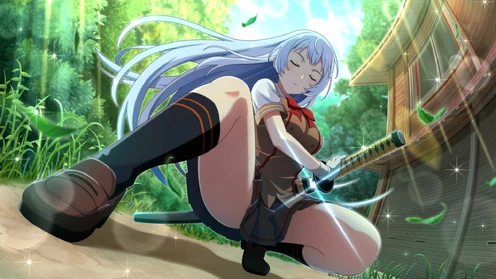 This card depicts Shiryuu Chou-un. The 6-star artwork features a teenage Rika Furude in a similar outfit.