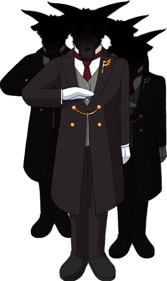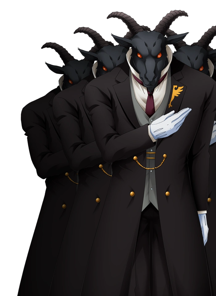 The Goat Butlers (山羊の従者 Yagi no Jūsha), referred to collectively as All of the Goats (山羊の皆さん Yagi no Minna-san) or simply Goats, are low level Furniture that serve Beatrice. They first appear in Turn of the Golden Witch.