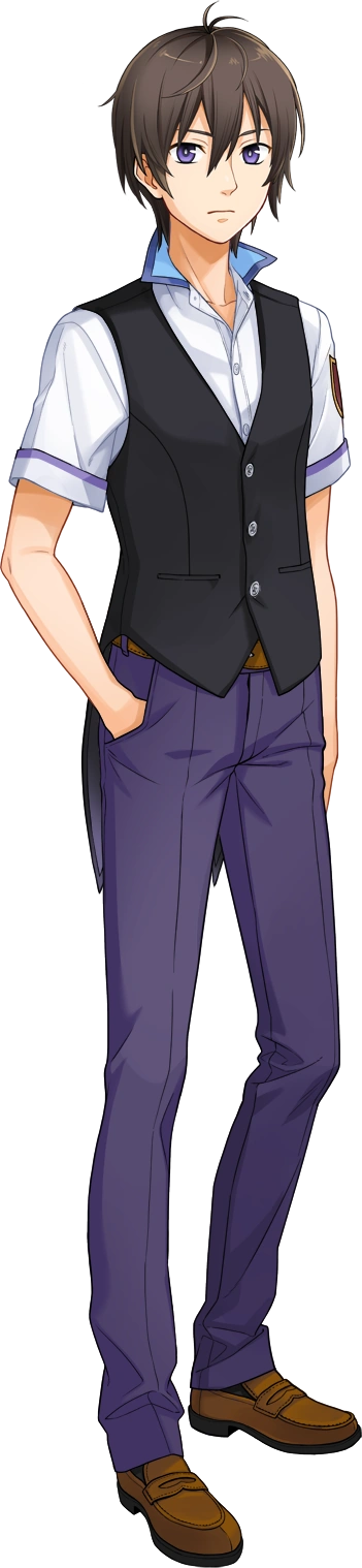 Ibito has short brown hair and purple eyes. His school uniform consists of a white dress shirt, with the school's insignia on the left arm, covered by a black vest. He also wears blue pants with a brown belt and brown shoes.