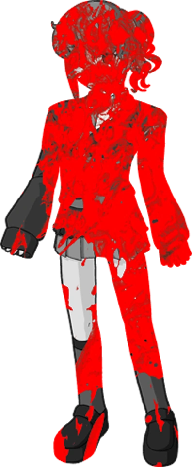 Her corpse was found in her room on the second floor of the mansion. About half of her head was destroyed. It's probably reasonable to assume that she was murdered with a powerful gun or something similar. She was smashed by her own attack due to George's counter-offensive specialized barrier. |