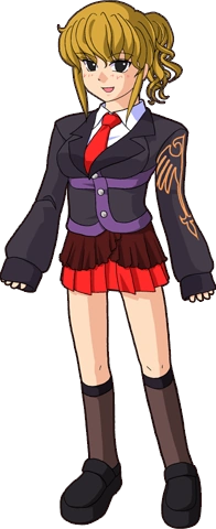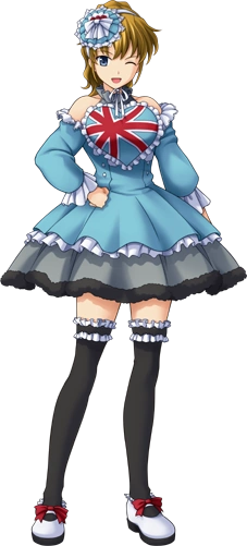 Most of the time, she wears a blue jacket with a white blouse and a red tie underneath, combined with a red miniskirt, knee-length stockings and black shoes. She wears the One-Winged Eagle on her sleeve. Her sleeves cover her hands a bit.
