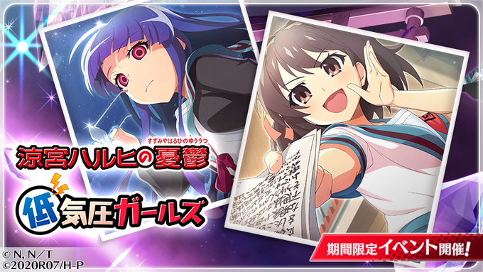 Low-Pressure Girls (低気圧ガールズ Teikiatsu Girls) is the sixty-third event in Higurashi no Naku Koro ni Mei and the twlfth collaboration event. It is a collab with The Melancholy of Haruhi Suzumiya that ran from April 1, 2023.