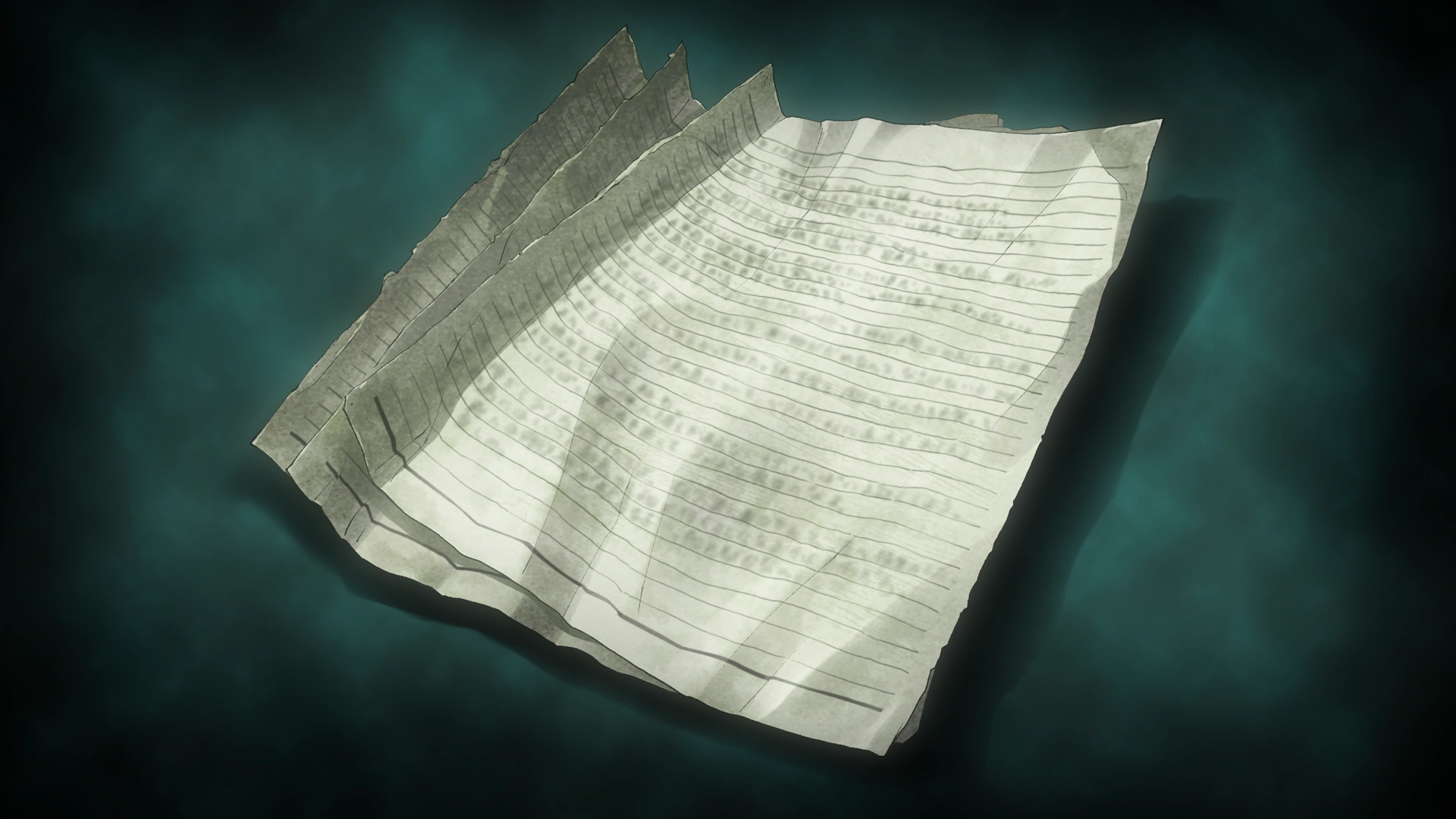 The first message bottle was found by a fisherman on the nearby island of Shikenijima years after the incident. It was initially privately kept by the fisherman, but was later released to the public after the Rokkenjima incident began to gain more notoriety. Some time after this first announcement, it was revealed that a second message bottle had actually been found by the police in the surrounding waters during their search for evidence in the aftermath of the accident.