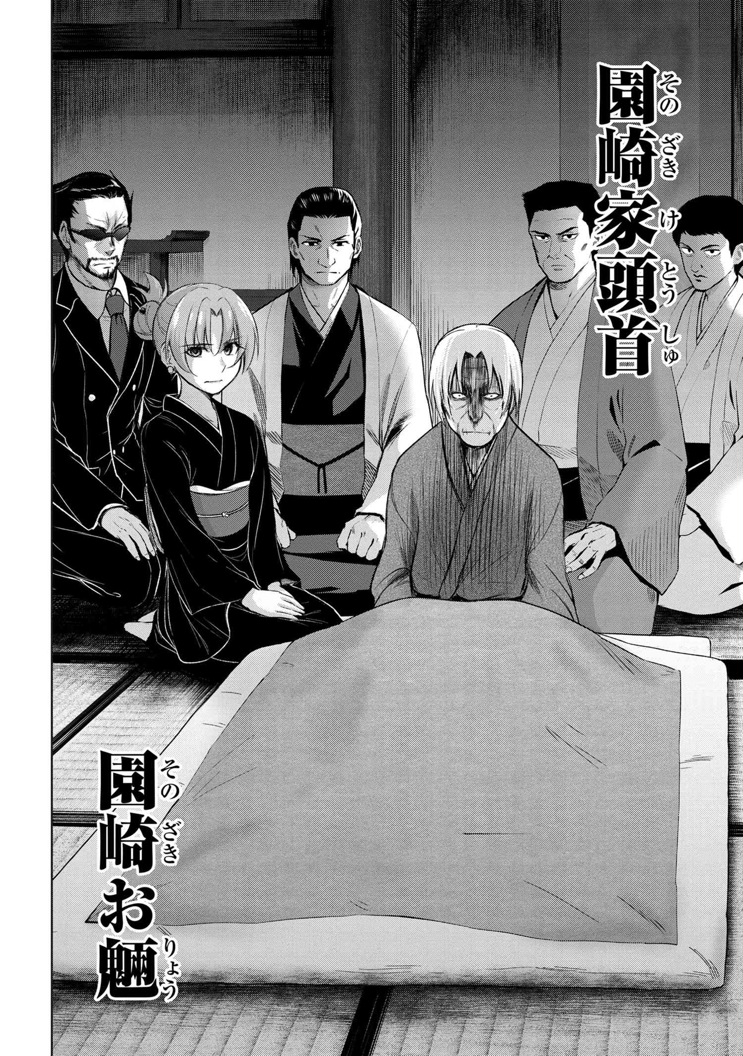 Keiichi asks to get the elders’ support for Satoko, but they refuse. The twins reveal that the village council is being paid by the government, so they can’t oppose them for risk of losing that funding for the Watanagashi. Mayor Kiichirou Kimiyoshi says that Keiichi is taking things too far, and Keiichi reminds him of how hard the mayor fought during the dam war. That spirit of unity is Hinamizawa’s tradition, and Keiichi wants to be proud of living in the village. Kichiirou changes his mind and says he wouldn’t be opposed, but Keiichi would have to convince a certain someone: Oryou Sonozaki, the head of the Three Families. The group heads to the Sonozaki estate to meet with Oryou.