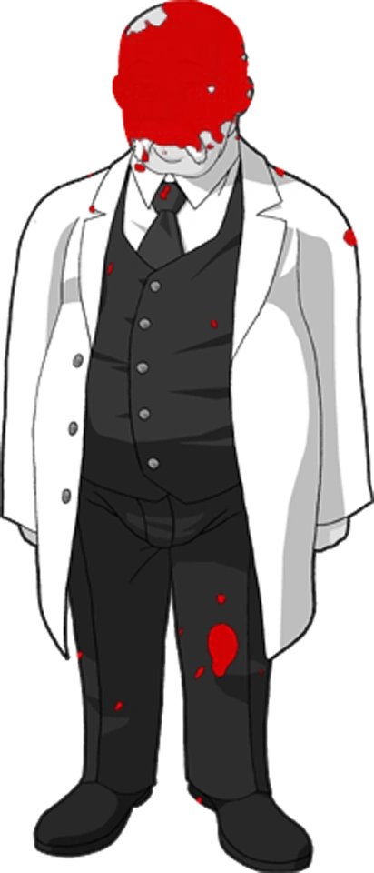 Jessica accuses Eva of being the culprit and they bicker, with Nanjo trying to break them up. He assures that neither person is responsible for any murders and that the witch is the one behind it all. Jessica is then accidentally blinded when Eva's gun discharges, and Nanjo brings her to the servant room to treat her. After putting a bandage around her eyes and calming her down, Nanjo checks in the hallway and is met by EVA-Beatrice, who threatens to kill him. Nanjo pleads for his life and that he has a sick grandchild, but the new witch kills him by ramming her staff into his forehead. EVA plays with the doctor's corpse for a while and then leaves it for Battler and Eva to find when they check the servants room.