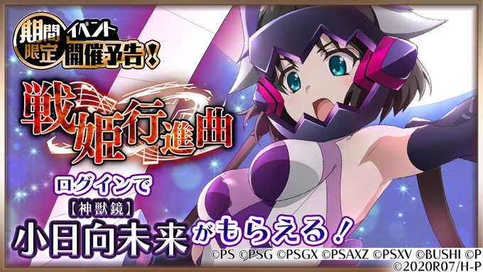 It is a collaboration event with the game Senki Zesshō Symphogear XD Unlimited that ran from May 21, 2021 until June 3, 2021. The SR card "Shénshòujìng" Miku Kohinata was available to those who completed the event story.